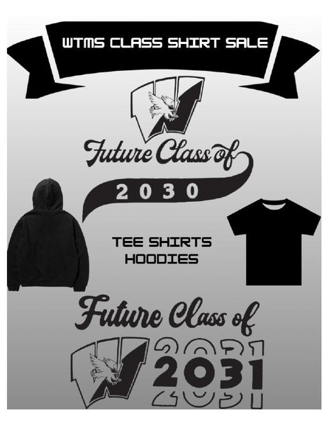 The 8th grade class is hosting a class shirt fundraiser for both 7th and 8th graders. Sales end 10/31/25 (extended from 10/17).